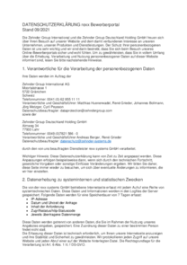 Wir bieten Ihnen die Möglichkeit sich über eine Online Bewerbungsplattform für offene Stellen bei uns zu bewerben. Die Bewerbungsplattform bedienen wir uns eines externen Auftragsverarbeiters, welcher zum vertraulichen Umgang ihrer Daten Verpflichtet ist. Ihre Bewerbungsdaten werden nur im Hinblick auf die Besetzung der Stelle bearbeitet, auf die Sie sich beworben haben und keinem Dritten bekannt- gegeben. Ohne Ihre ausdrückliche gegenteilige Zustimmung wird das (elektronische) Bewerbungsdossier nach dem Abschluss des Bewerbungsverfahrens gelöscht/vernichtet, soweit es nicht einer gesetzlichen Aufbewahrungspflicht unterliegt.