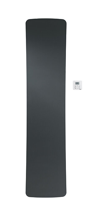 Beim Design-Heizkörper Zehnder Metropolitan ist die Heizpatrone im Rahmenprofil integriert und somit unsichtbar. Das Infrarot-Steuergerät sorgt für kabellose Kommunikation zwischen Heizkörper und Regler.