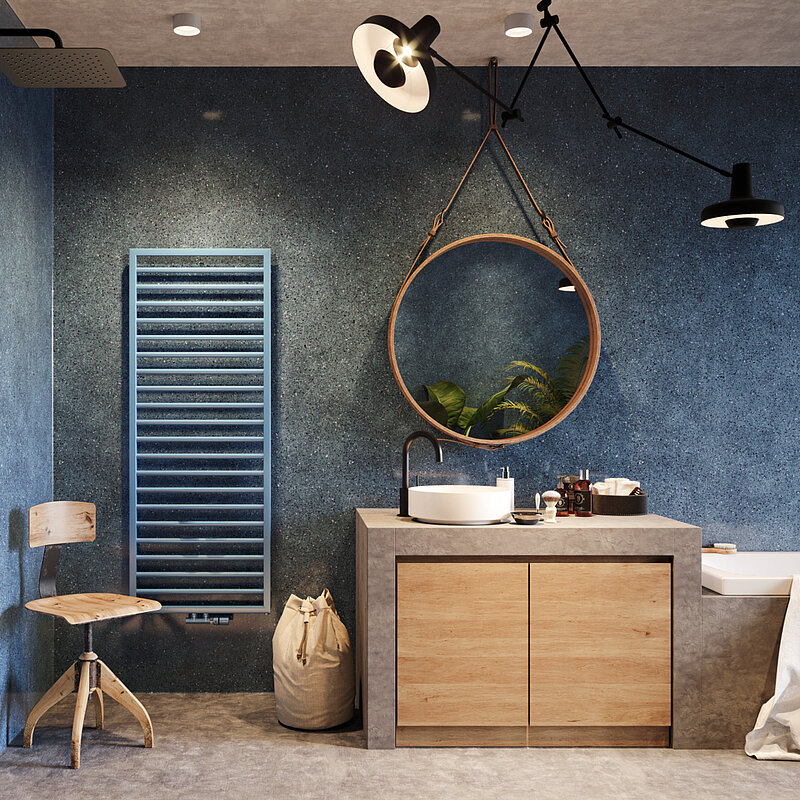 Grobe, natürliche Oberflächen stehen im Kontrast zu raffinierten Designs. Raue Betontexturen gemischt mit polierten Steinoberflächen schaffen ein multisensorisches Erlebnis. Schwarze und dunkelgraue Farbtöne, Graphit und Taupe sind der Schlüssel für ein mystisches Zuhause. Die monochromen Räume werden durch dunkle Blautöne und gebürstetes Metall akzentuiert. Die gedämpfte Farbpalette ist wie geschaffen für einen ruhigen Ort für persönliche Rituale und Wellness.