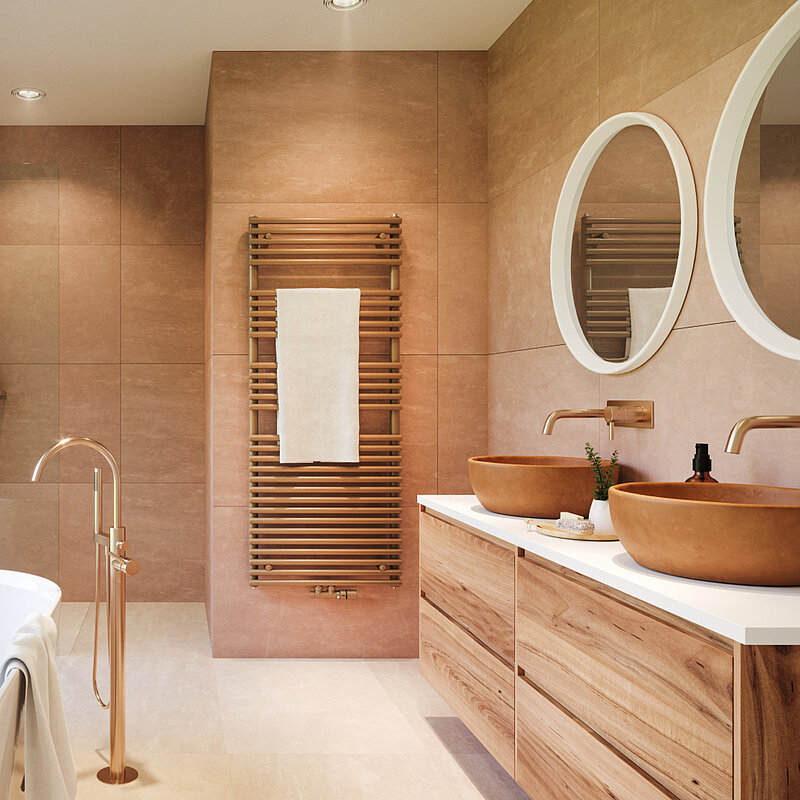Moderne Design-Heizköper mit zeitlos eleganter Chrom-Oberfläche fügen sich in die unterschiedlichsten Bad-Ambiente ein, von klassisch bis puristisch. Der Heizkörperspezialist Zehnder verchromt seine Design-Heizkörper im eigenen Werk und verfügt über langjährige Erfahrung im Bereich dieser hochwertigen Oberflächenveredelung.