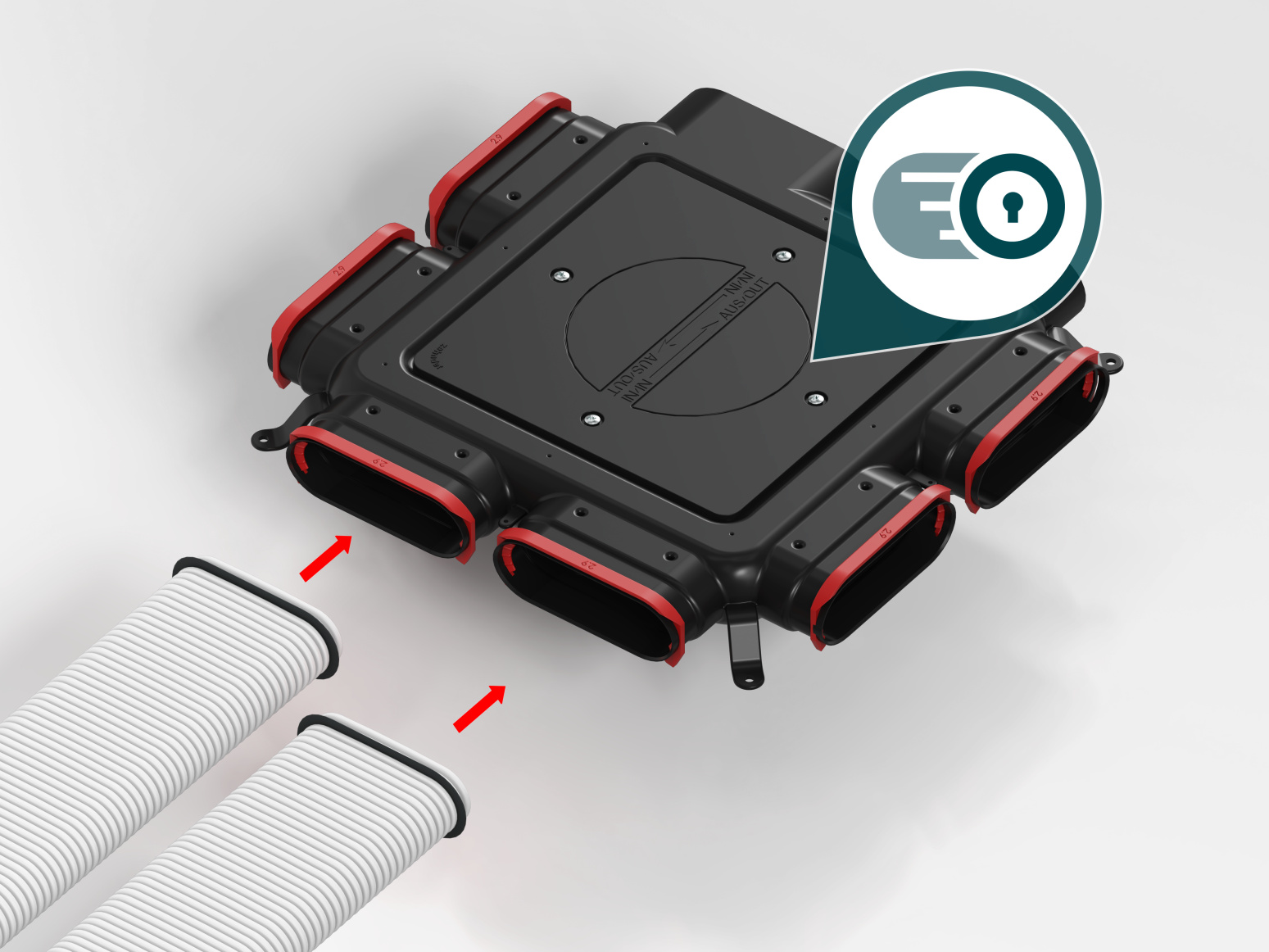 Durch intuitive, passgenaue Montage bildet das vorgedämmte Luftverteilsystem eine luftdichte Einheit ohne Wärmebrücken. Die Luft in den Rohren zirkuliert ohne Temperaturverlust. Dabei wird die Bildung von Kondensat vermieden.