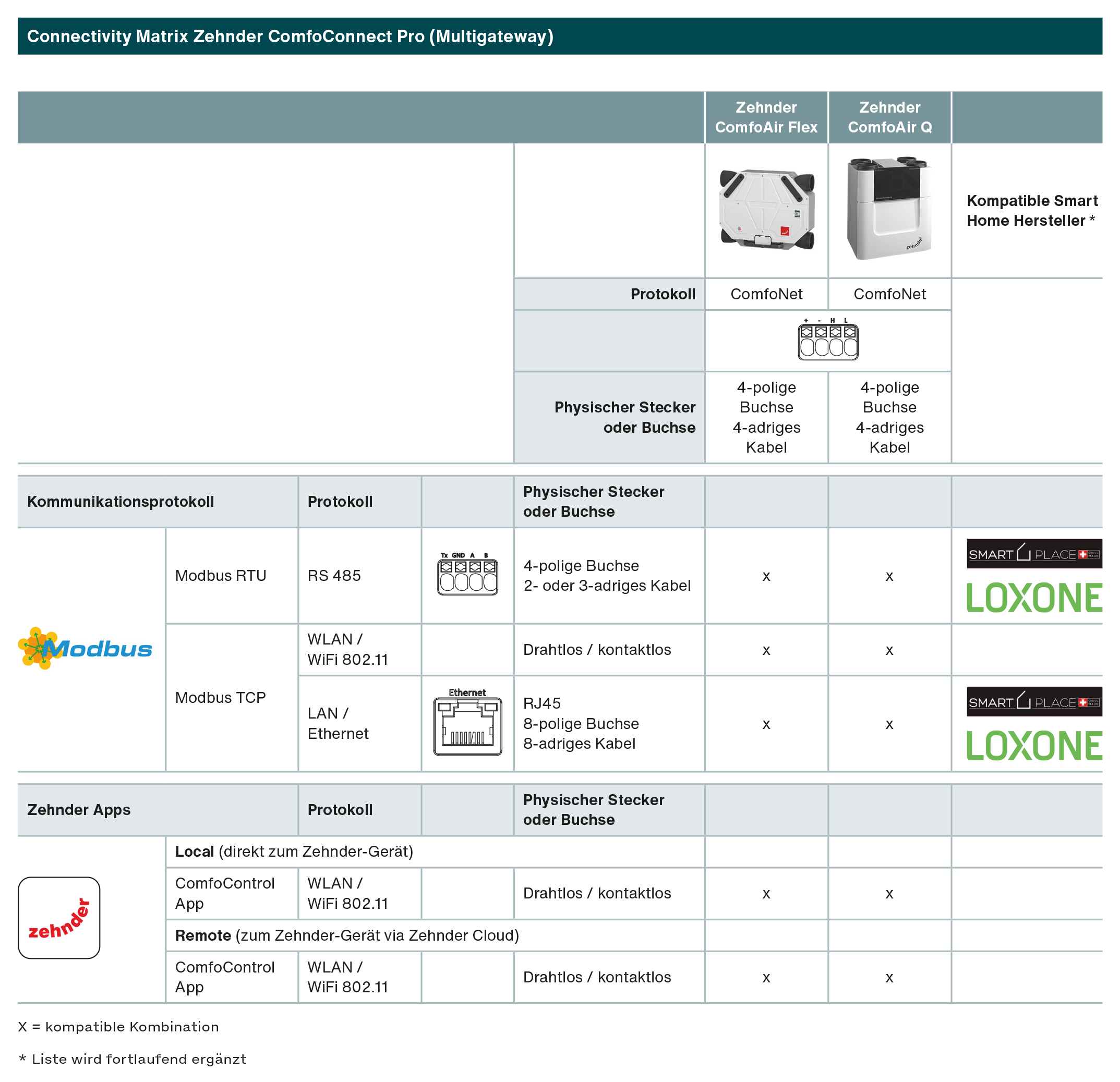 Die Vernetzung von Zehnder Geräten mit verschiedenen Smarthome-Lösungen wird durch das Multigateway Gerät Zehnder ComfoConnect Pro ermöglicht.