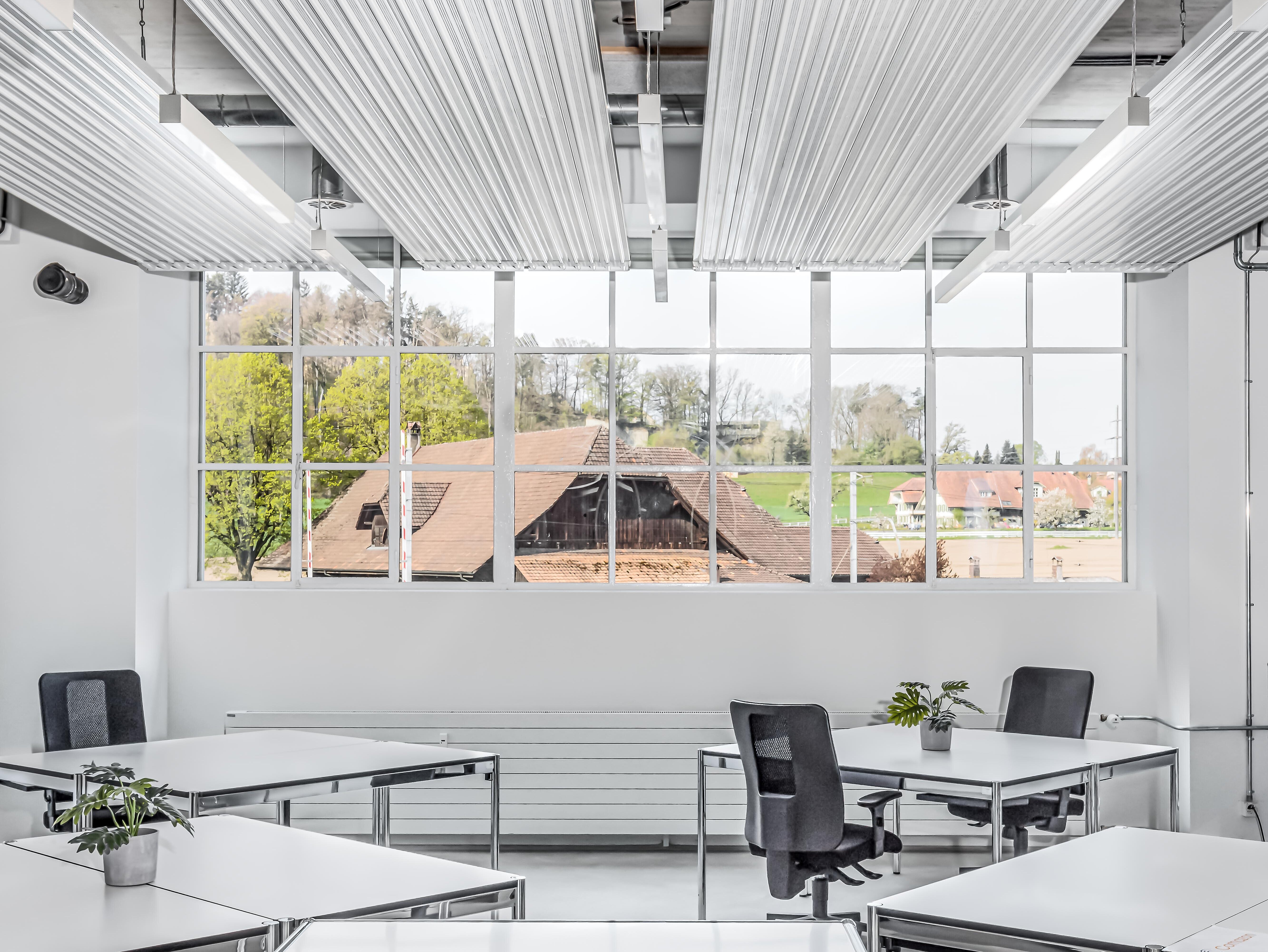 Die Büros und Workshop-Räume im urbanen Stil sind mit modernster Technologie ausgestattet. Für höchsten Klima-Komfort und eine optimale Konzentrationsumgebung sorgen die Kühldecken-Systeme von Zehnder. Schallabsorbierende Deckenstrahlplatten der neusten Generation ZFP kühlen die Räumlichkeiten des ZID auf leise und energieeffiziente Weise.