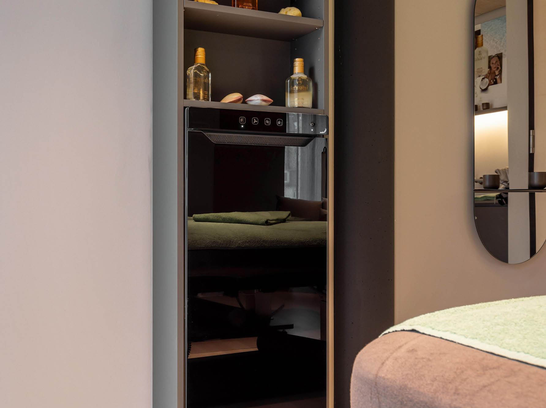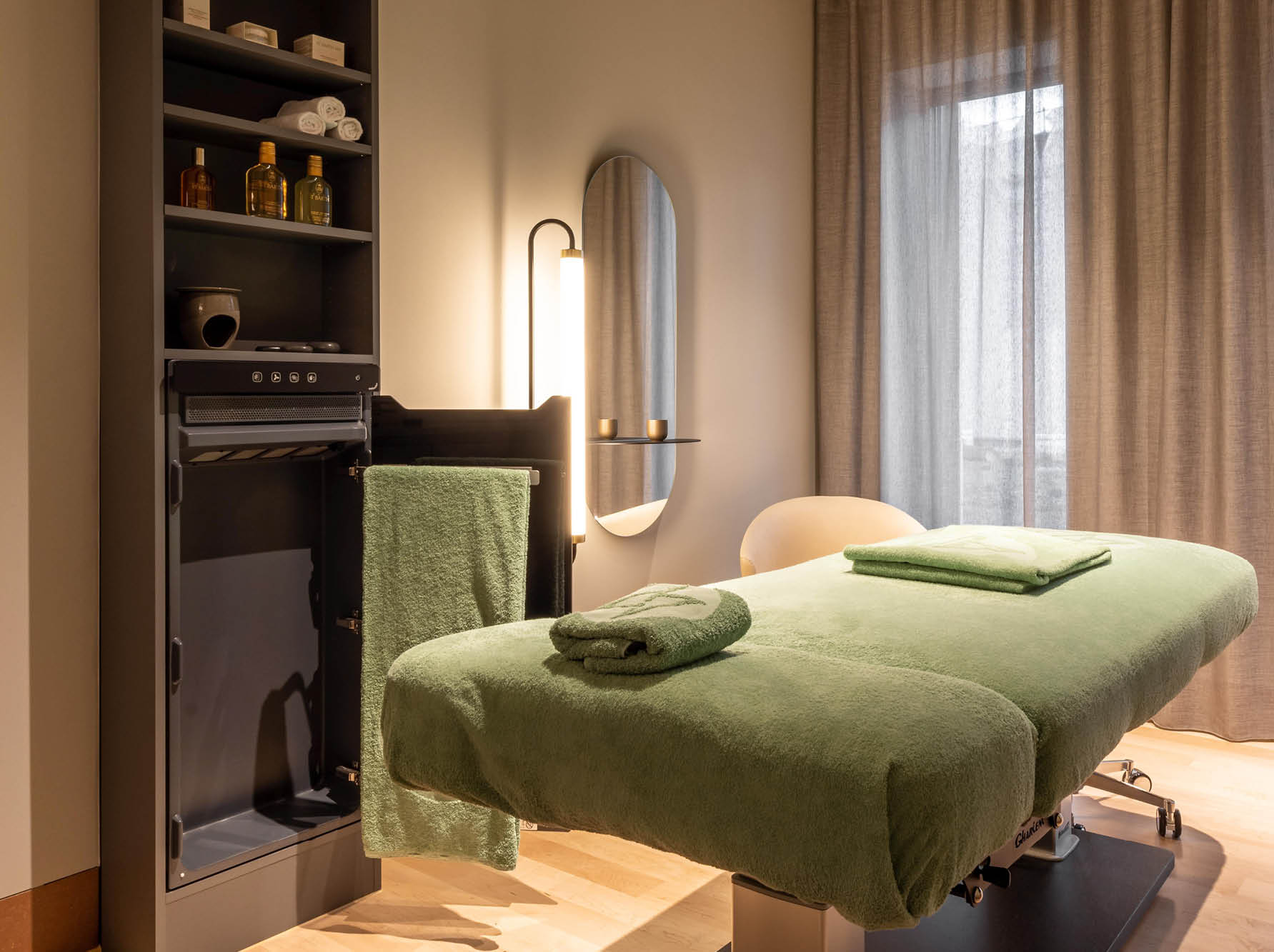 Für die kosmetischen Behandlungsräume im Spa-Bereich wurde ein Produkt gesucht, welches sowohl Handtücher vorwärmen und trocknen kann, sehr wenig Platz im Raum benötigt und auch nach dem Rohbau noch problemlos zu installieren war.