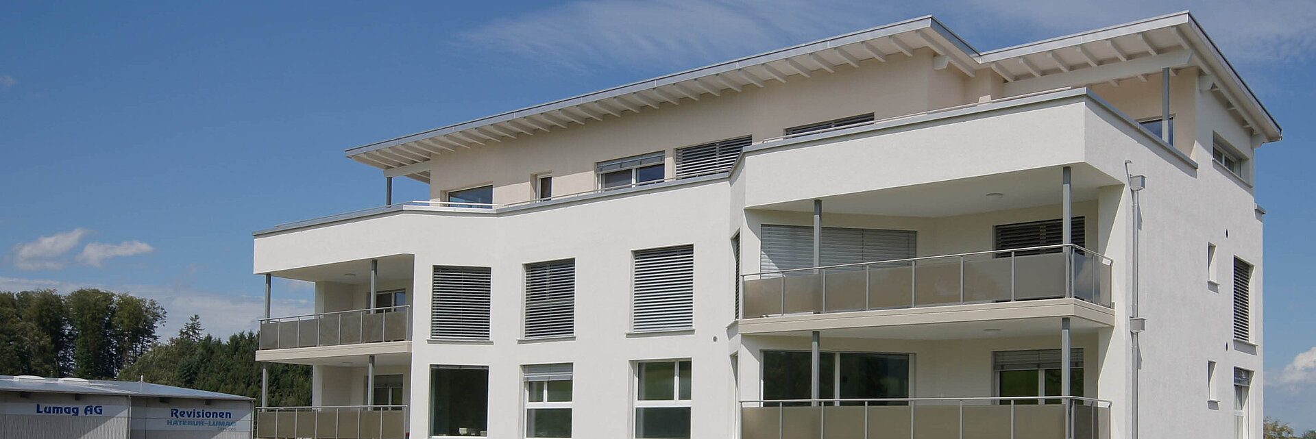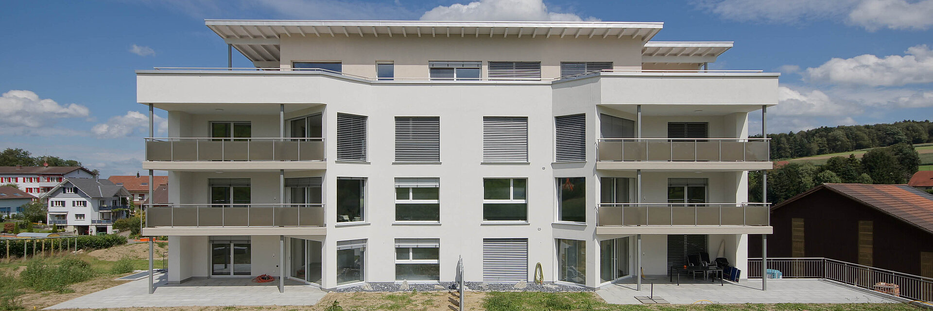 Im beschaulichen Dorf Roggliswil (LU) entstand von Mai 2013 bis Mitte Juni 2014 ein modernes Mehrfamilienhaus im Minergie-Standard: pro Etage zwei 4,5 Zimmer-Wohnungen zu je 120 m², im vierten Geschoss eine grosszügigen Attikawohnung mit 160 m² Wohnfläche.