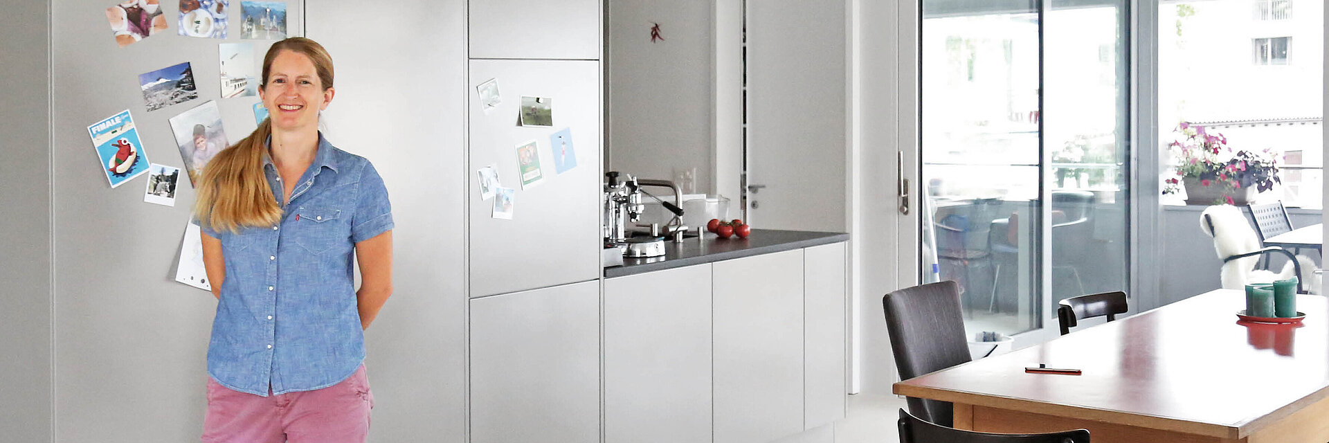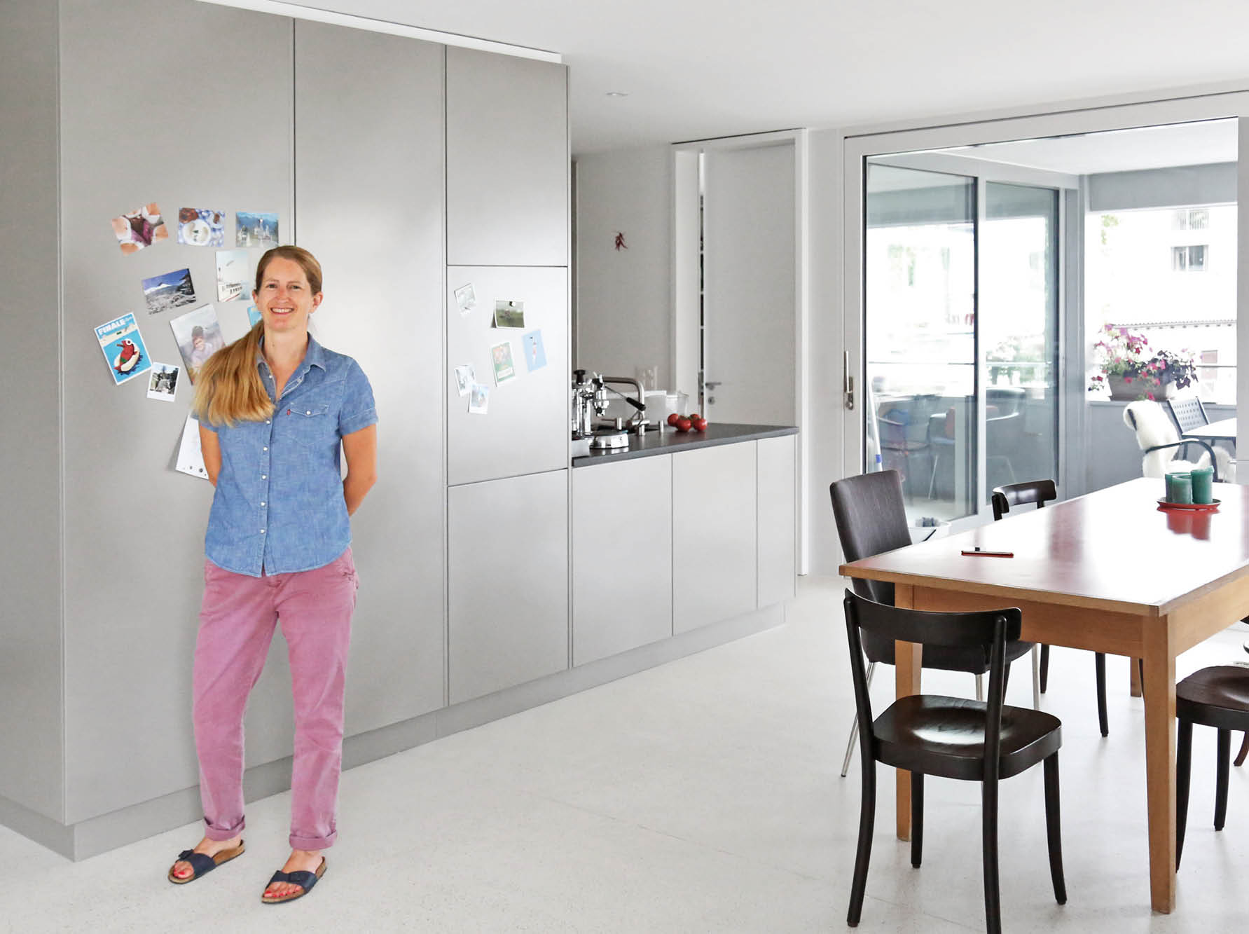 Mittels einer Fernbedienung pro Wohnung im Bereich der Küche, können die Geräte einfach und bedarfsgerecht einzeln angesteuert werden. Das Lüftungsgerät Zehnder ComfoAir Q für die grosszügige Attikawohnung befindet sich in einem Reduit direkt in der Wohnung. «Die hohen Decken und die Geräumigkeit der Dachwohnung machten die Installation der Komfortlüftung direkt in der Wohnung möglich», erklärt der zuständige Planer vom Architekturbüro huggenbergerfries. «So kann der Platz der Attikawohnung optimal genutzt werden, was wiederum im Keller Platz einspart».