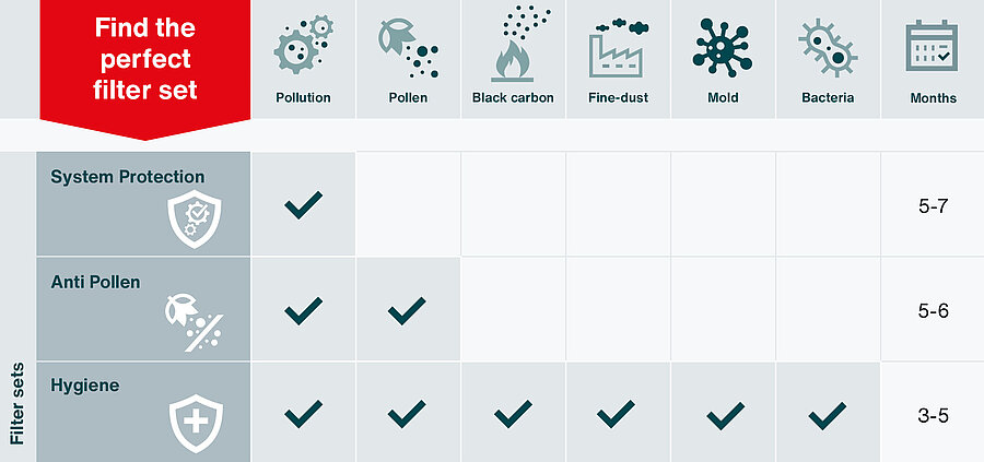 Wählen Sie die Filtereinlage, die Ihren Bedürfnissen entspricht – sei es ein Pollen-, Hygiene- oder Systemschutz-Filter.