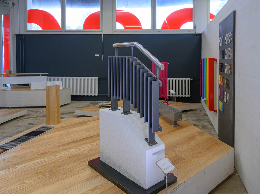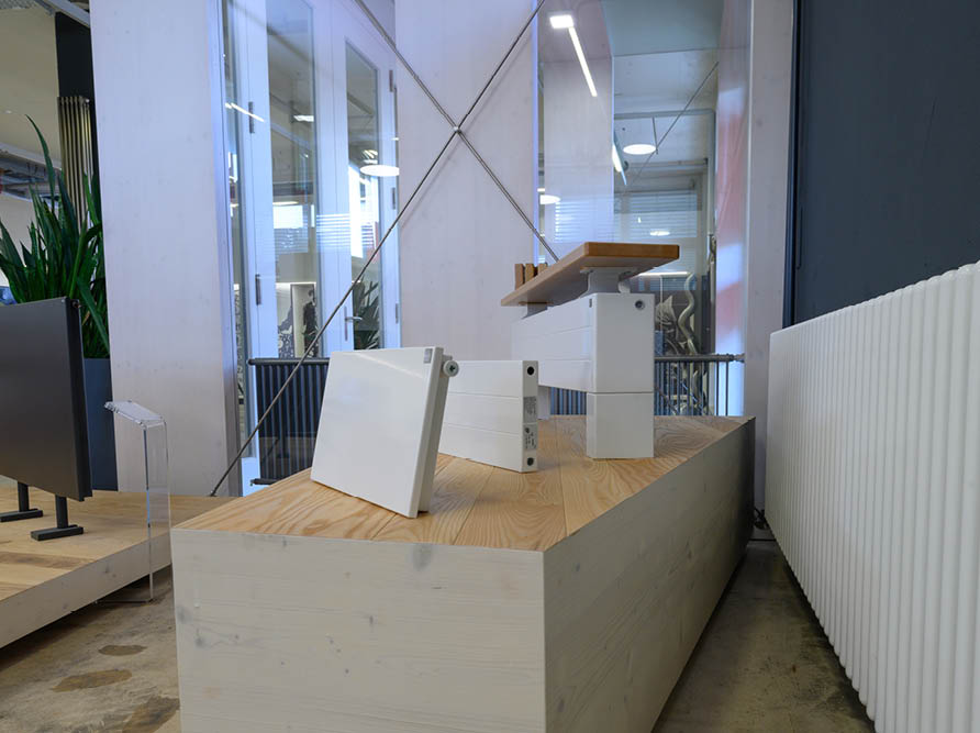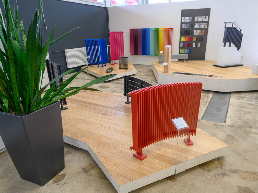 Im Empfangsbereich der Academy werden neben der Firmengeschichte die neusten Innovationen von Zehnder vorgestellt. Die Zehnder Heizkörpermodelle und deren Farbwelt mit verschiedenen Oberflächen sind im «RAD-Corner» veranschaulicht. Beim Rundgang durch die Academy kann die Heizkörpertechnik mit Themen wie Heizen, Kühlen, Strahlung, Konvektion, Apps und History erfahren werden, so präsentieren sich zum Beispiel modernste Zehnder Deckenstrahlplatten an der Decke oder eine Systemwand, wo der hydraulische Druckausgleich an Heizkörpern nachgestellt werden kann. Auch einige Badheizkörper sind anzutreffen, die Gesamtausstellung des Designstücke befindet sich aber im Hauptgebäude nebenan.