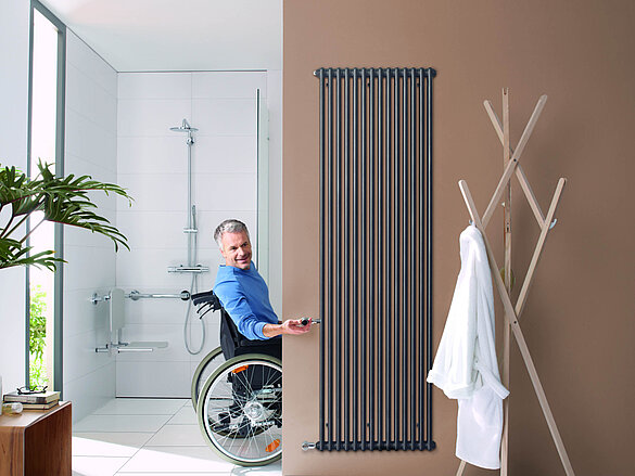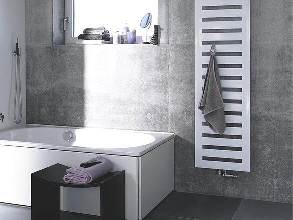 Spesso in bagno viene utilizzato un corpo riscaldante elettrico come integrazione al riscaldamento a pavimento. Questa soluzione si inserisce perfettamente in una casa efficiente dal punto di vista energetico, soprattutto in combinazione con pannelli solari e ventilazione con recupero del calore. Il riscaldamento elettrico viene scelto anche per ambienti che necessitano di essere riscaldati a una temperatura confortevole in poco tempo e spesso per brevi periodi. In bagno, il corpo riscaldante elettrico viene utilizzato per aumentare il comfort e per preriscaldare e asciugare gli asciugamani. In questo modo è possibile rispondere individualmente e rapidamente alle diverse esigenze nella stanza.