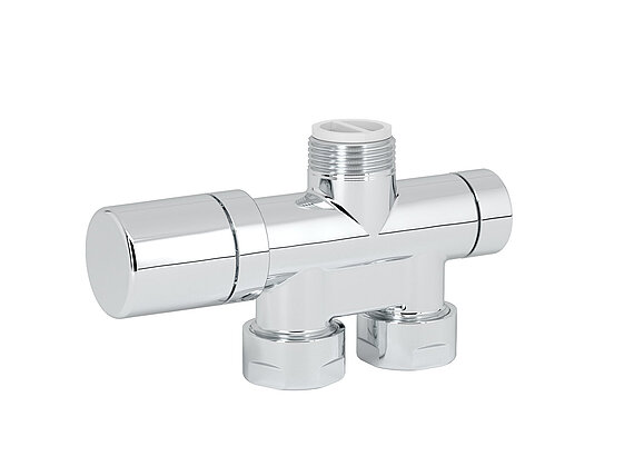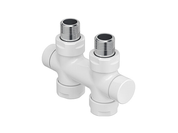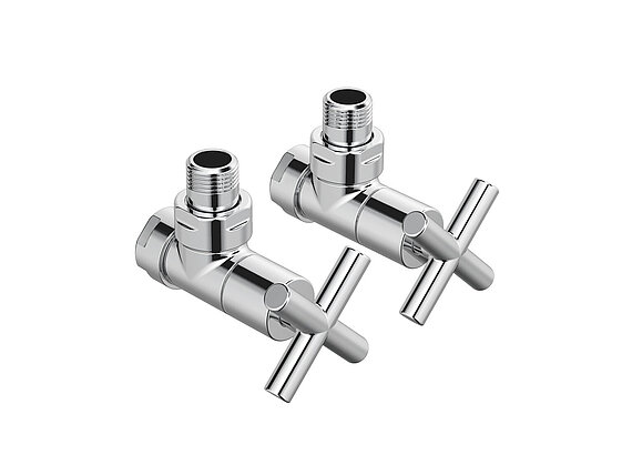 Sono disponibili vari set di valvole con corpo valvola e avvitatura ritorno, compresi 2 raccordi di riduzione da 1/2 pollici per corpi riscaldanti e dadi per raccordo sul lato uscita con la stessa finitura del corpo valvola.