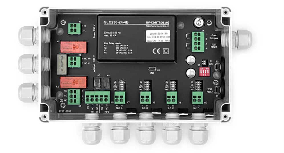 Il box per serrande tagliafuoco invia i comandi dall’apparecchio di ventilazione alle serrande tagliafuoco e le alimenta con corrente elettrica. In tal modo si garantisce il necessario monitoraggio nell’ambito della protezione antincendio all’interno dei sistemi di ventilazione. In caso di errore, dovuto ad es. all’attivazione di un rivelatore di fumo, le serrande tagliafuoco vengono chiuse e l’apparecchio di ventilazione disinserito.