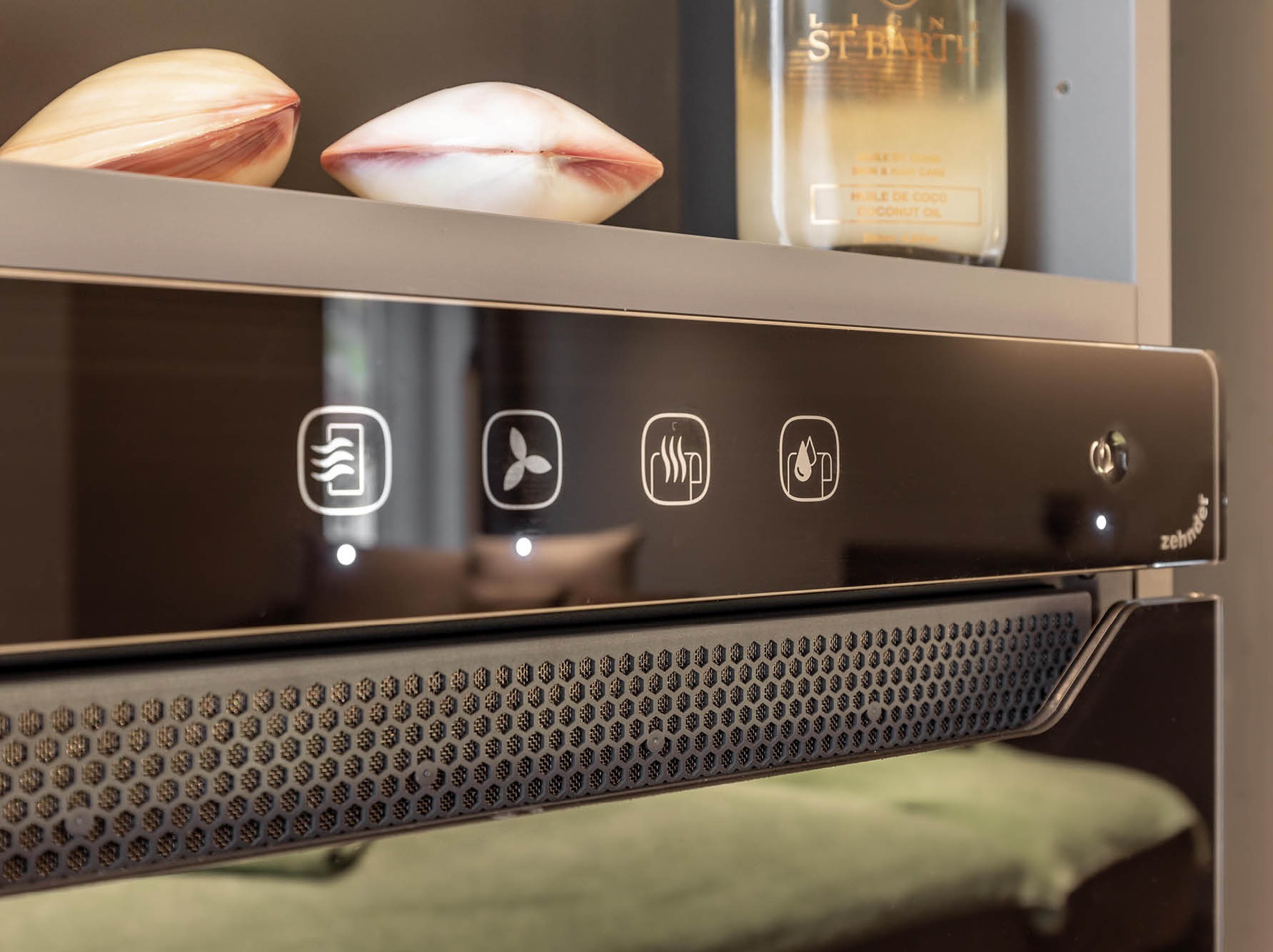Nina Suma spiega perché questa scelta: «La costruzione era già in fase avanzata quando abbiamo scelto il dispositivo di comfort termico Zehnder Zenia. A differenza della maggior parte dei prodotti della concorrenza, Zehnder Zenia era disponibile anche in una variante a montaggio sopra intonaco. Anche in questa variante di installazione, lo Zenia occupa poco spazio grazie alle dimensioni molto ridotte. Un altro punto a favore dal mio punto di vista sono le prestazioni e la facilità d’uso del dispositivo. È facile da accendere e in un attimo, come per magia, assicura salviette calde e confortevoli, per le mani o da bagno».