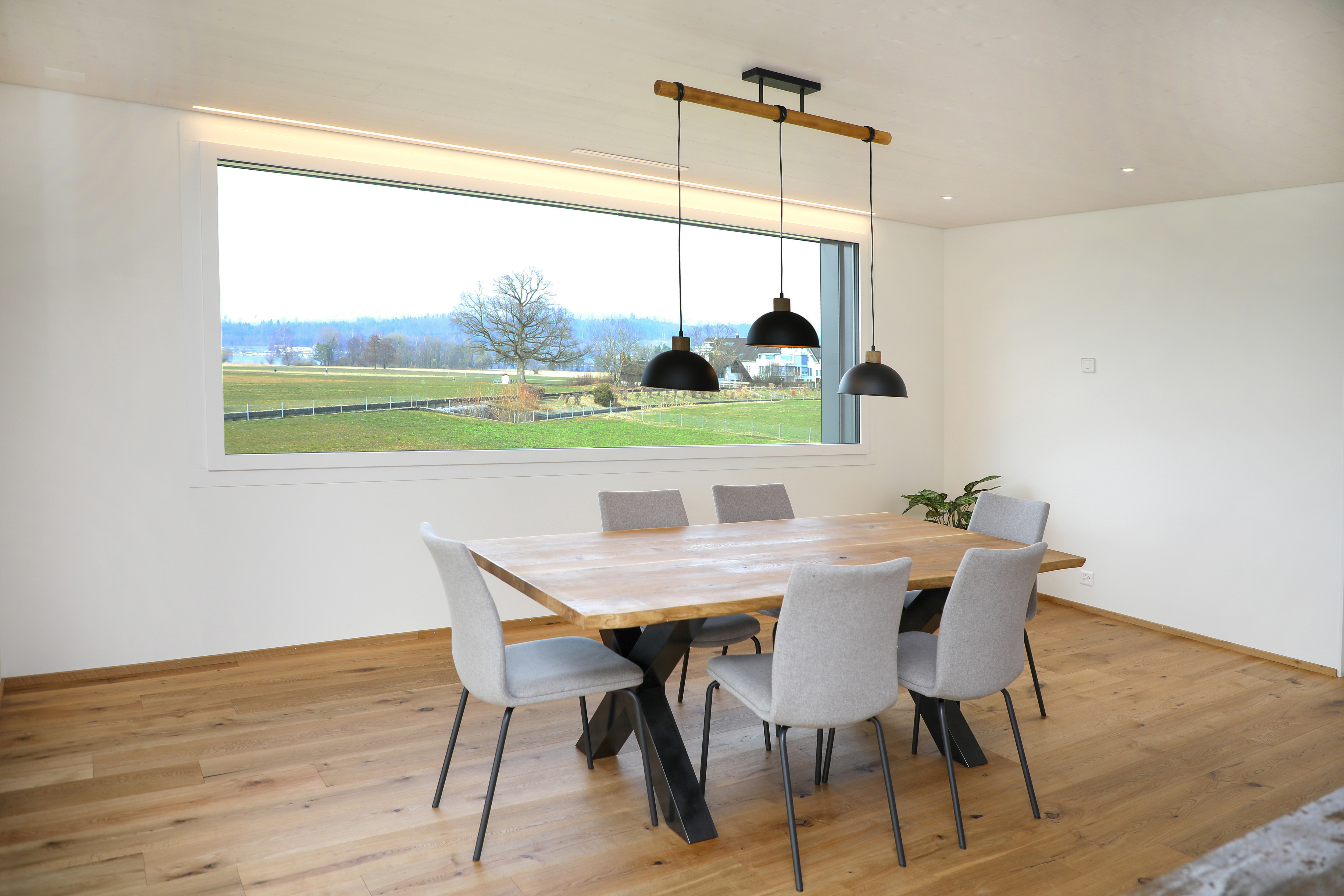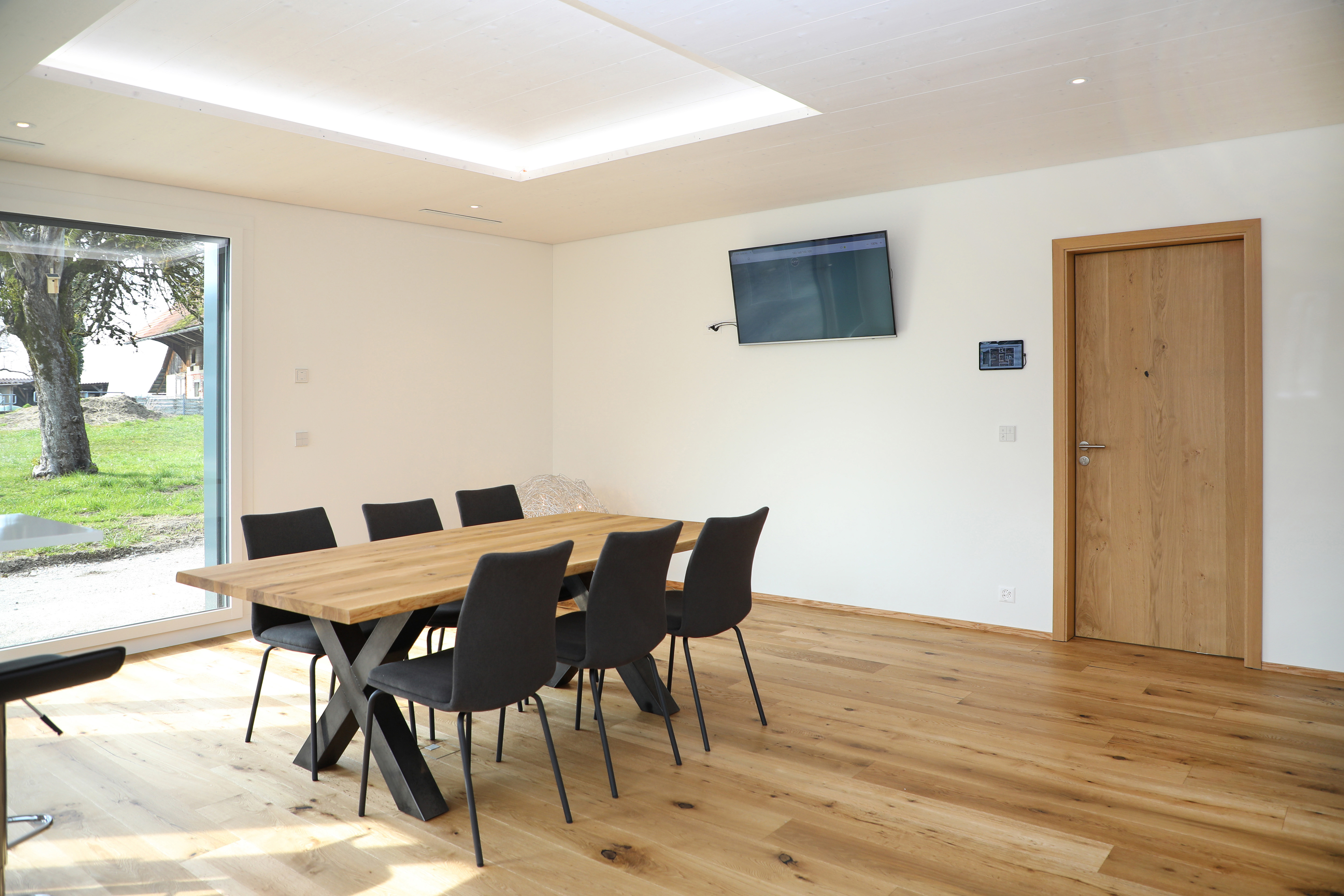 Il sistema di ventilazione comfort di Zehnder consente un apporto uniforme di aria fresca in tutto l'edificio. L'innovativa tecnologia del ventilatore garantisce un funzionamento silenzioso ed efficiente dal punto di vista energetico. L'aria fresca entra negli spazi abitativi e commerciali attraverso valvole discrete nel soffitto. «Poiché l'edificio viene utilizzato anche come showroom, l'effetto estetico era molto importante per me», spiega Heinz Bruhin. L'elegante effetto vetro bianco dei diffusori lineari ComfoGrid Linea si sposa perfettamente con il soffitto in legno chiaro. Per quanto riguarda il controllo della temperatura, gli apparecchi di ventilazione si regolano in base alla stagione. Con temperature esterne molto basse, una serpentina di preriscaldamento modulante provvede a pre-temperare l'aria esterna a monte dello scambiatore di calore a diamante, in modo da proteggere dal gelo. In estate, l'aria di mandata viene automaticamente preraffreddata e deumidificata con l'accessorio di raffreddamento ComfoCool Q. «Ci auguriamo che questa soluzione elimini la necessità di un costoso impianto di climatizzazione», afferma Heinz Bruhin, spiegando la sua decisione. La qualità dell'aria è costantemente monitorata grazie alla tecnologia dei sensori intelligenti. I sensori di CO2, VOC, umidità e temperatura sono posizionati in ogni stanza. Se, ad esempio, i livelli di CO2 e di umidità aumentano durante una riunione con i clienti, l'apparecchio di ventilazione passa automaticamente in modalità di ventilazione. I sensori sono controllati dal sistema iCASA smarthome. La tecnologia di riscaldamento e ventilazione di Zehnder ha potuto essere facilmente integrata e configurata nella domotica tramite un'interfaccia KNX.