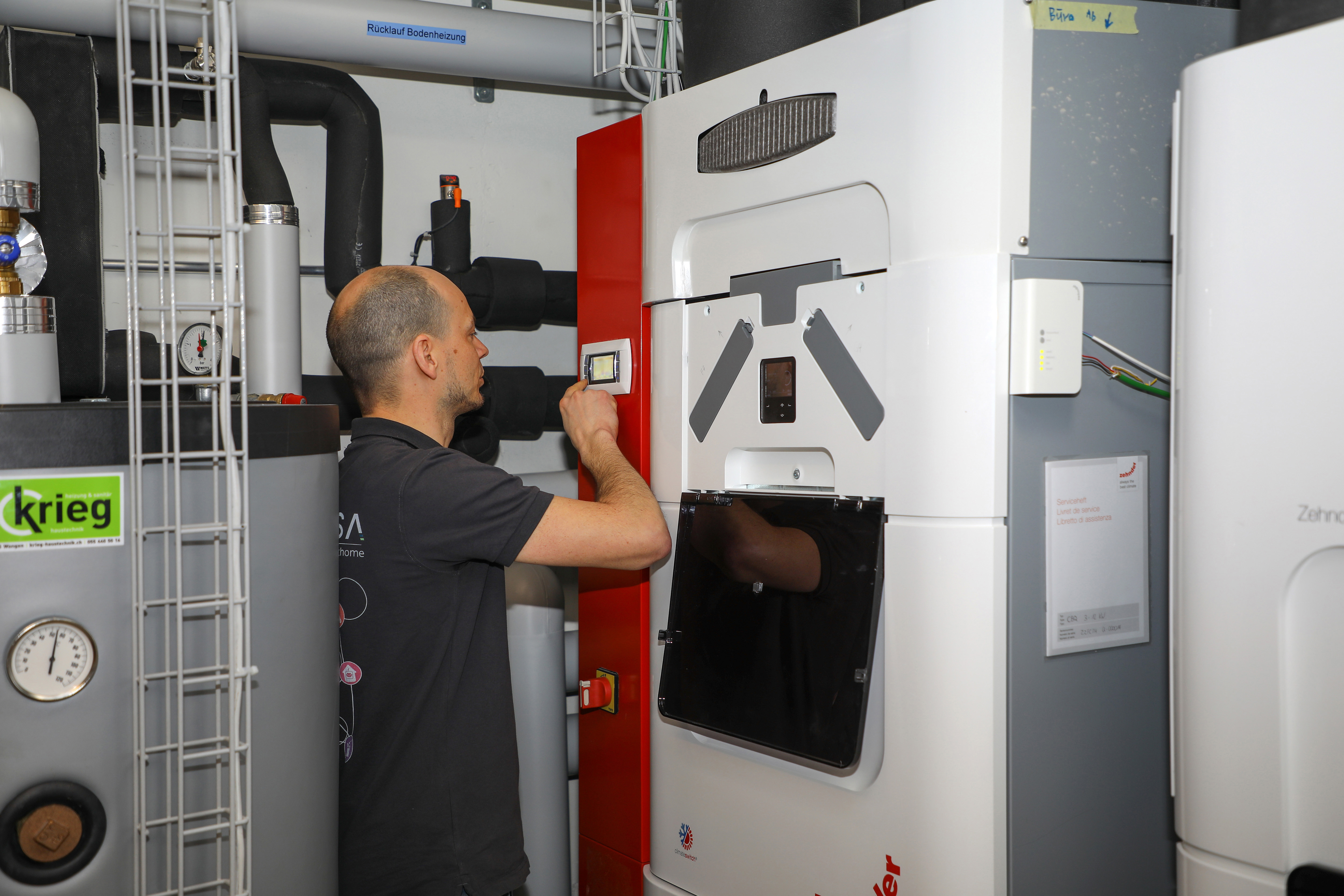 Per quanto riguarda la generazione del calore, lo sviluppatore di software si affida a una tecnologia sostenibile: un impianto fotovoltaico con gestione dell'energia (ZEV) è posizionato sul tetto piano per utilizzare in modo efficiente l'energia solare in eccesso. Inoltre, una pompa di calore dovrebbe fornire calore in modo efficiente dal punto di vista energetico, senza uso di combustibili fossili. «Essendo specializzato in smart home, per me era importante avere per il controllo un'interfaccia KNX aperta», aggiunge Heinz Bruhin a proposito dei suoi requisiti per la tecnologia di riscaldamento e ventilazione.