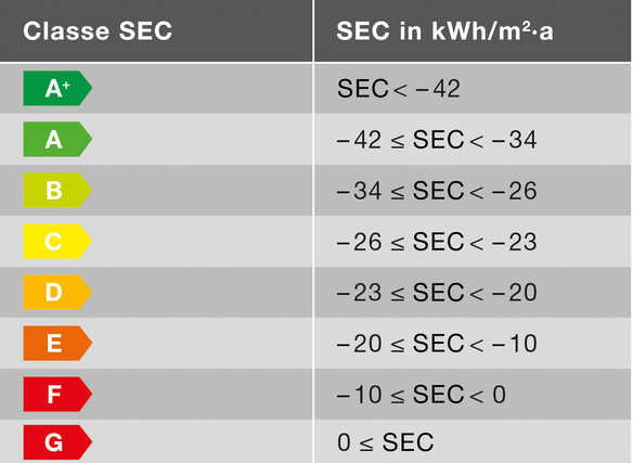Nell'esempio: Zehnder ComfoAir 350 Luxe con sensore di CO2 Zehnder, medio, dunque valore medio: Classe SEV A+